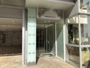 ガラス面が大きく、ステイリッシュな外観デザインがひと際目立つオフィスビル。1-2階路面店の募集です