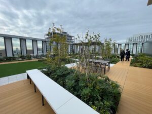 伏見エリアの最新オフィスビル。1階にはラウンジ、屋上にもテラスを備えた贅沢仕様です。