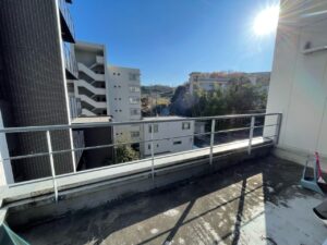 アーチ状になった天井の最高部は6mを超えます。現状クラッシックバレエのスタジオで壁は鏡張りに。さらに専用ベランダもあり景観にも優れます。