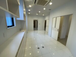 ビルのワンフロア、室内はなかなかおしゃれにまとめられていており画像にはありませんがバックスペースに洗濯機もおけます。クリニックはもちろん、シャワー室もあるのでエステ等