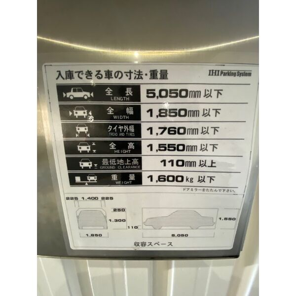 | 駐車場 | 立駐(全長5,050㎜、全幅1850㎜、全高1,550㎜、重量1,600㎏以下) | ||