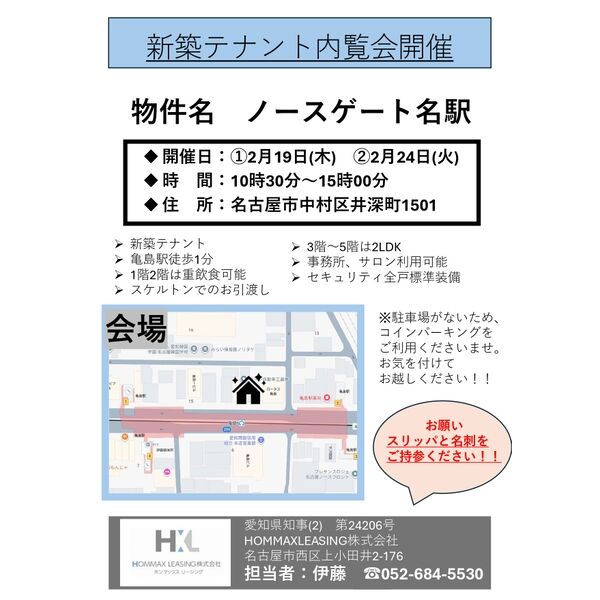 お問い合わせの際に「ノースゲート名駅 1F」