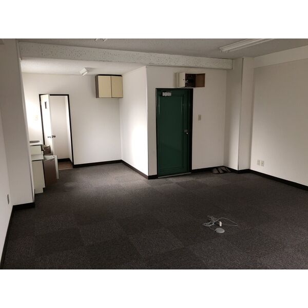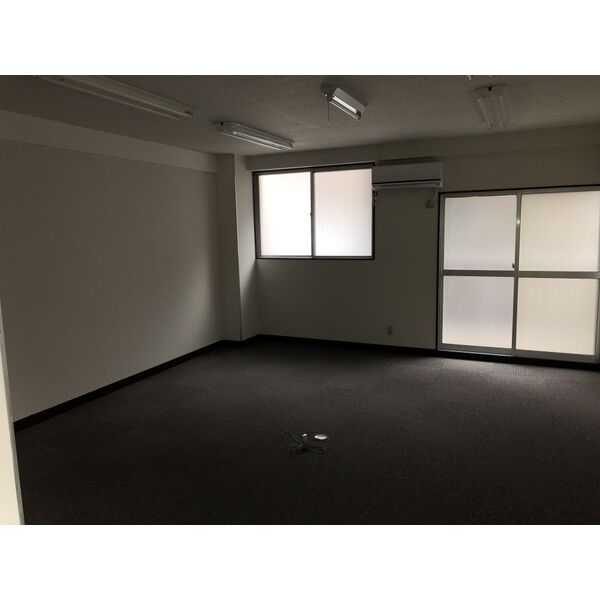 事務所仕様に改装済み、もちろんエアコンもあります。正面側ではありませんがベランダあります。